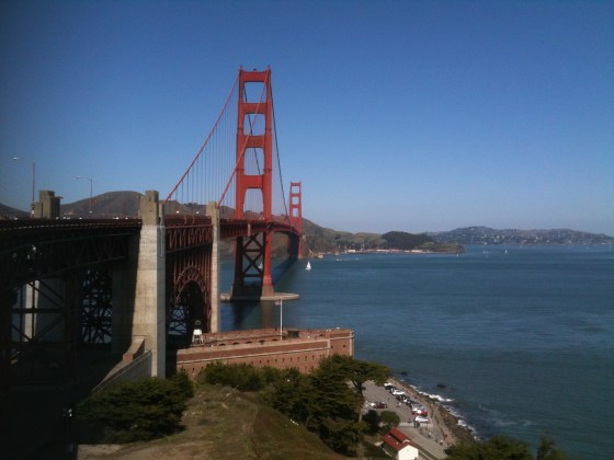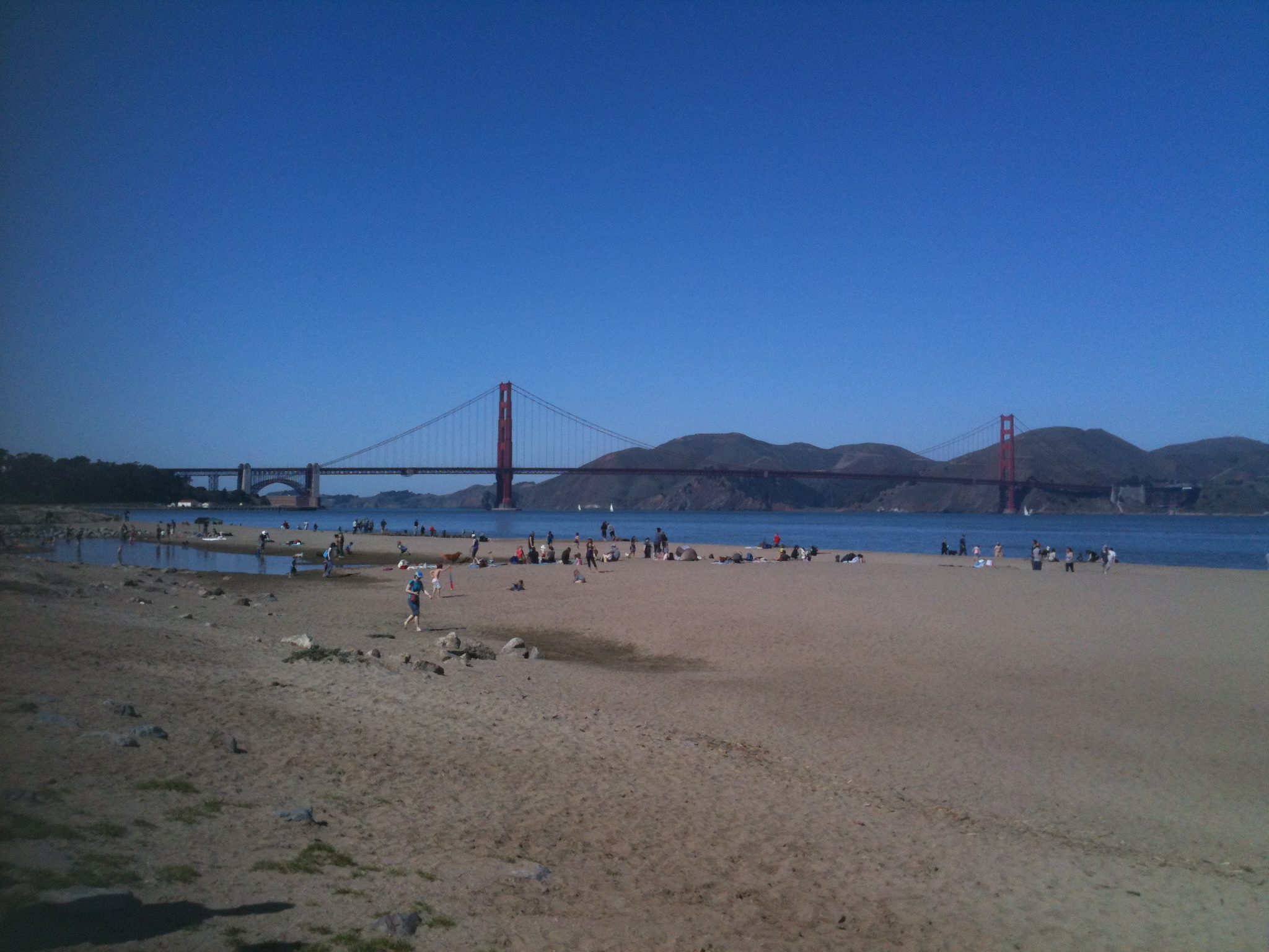 They give you a map and all. Out along the beach, up and over the Golden Gate Bridge, and down to Sausalito for a panini and iced coffee in the sun. Lovely.